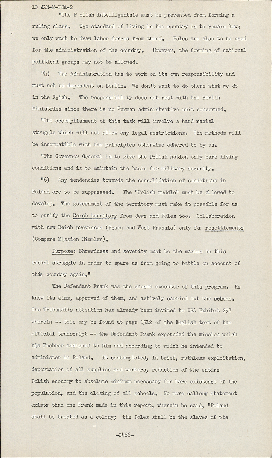 "The Governor General is to give the Polish nation only bare living conditions and is to maintain the basis for military security.